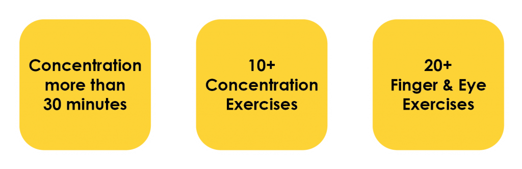 visual and auditory focus with concentration training. During the training, the children will be in an alpha wave state that is conducive to learn, relax and focus. Hence, the children's attention span and depth will be greatly improved. Therefore, no matter what the children learns, they will fully absorb if they concentrate.
